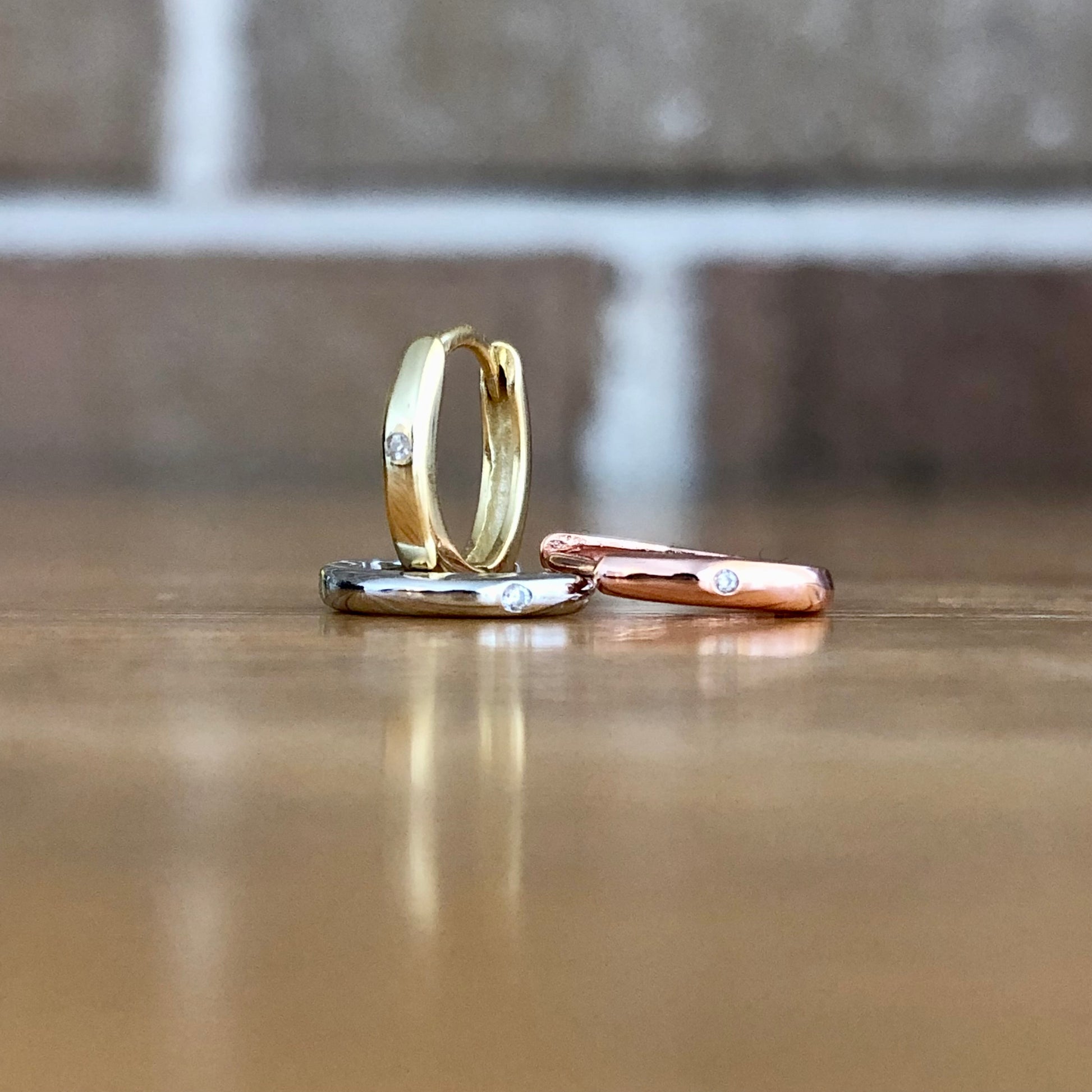 Arracaditas con un pequeño brillo al frente que te encantará con su presentación en tres colores: Rose Gold, Dorado y Plateado.